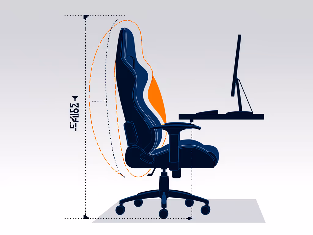 - Recline safety zone: Maximum recline angle must stay within your desk's clearance line, so calculate using: