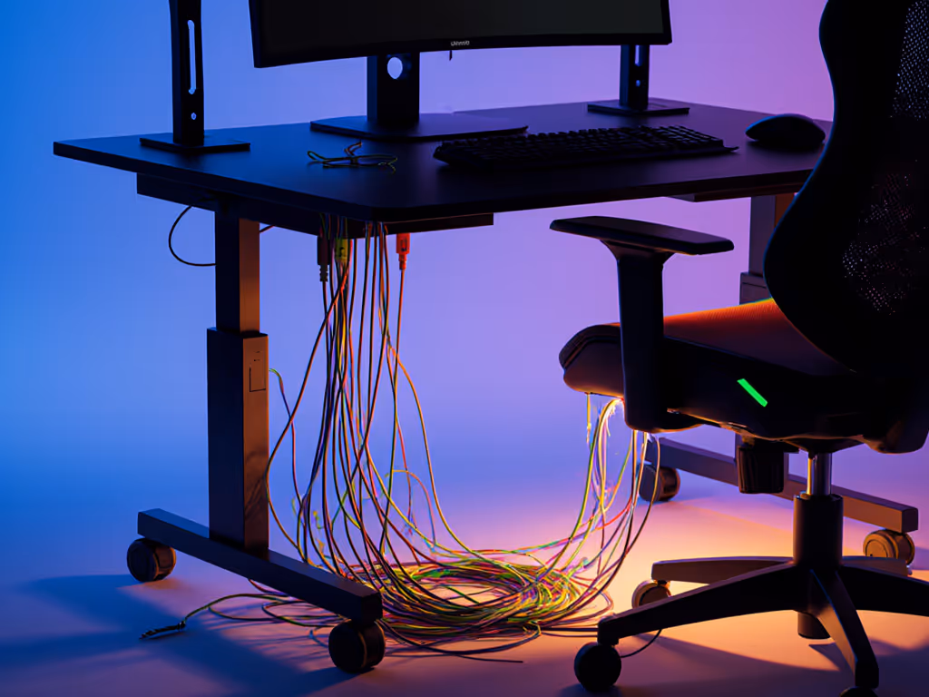 The "just throw some velcro underneath" approach to cable management fails spectacularly in real PC gaming desk chair environments. Most desks force you to choose between: